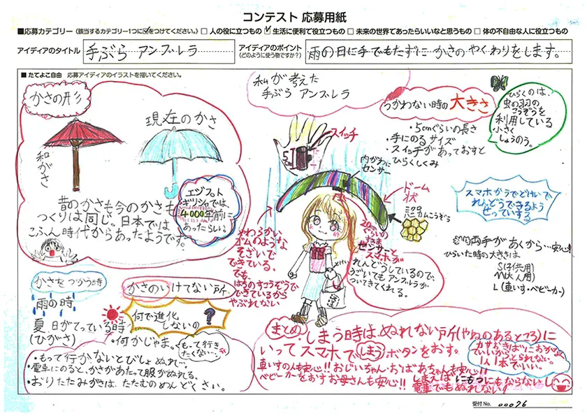 発明アイディア奨励賞 藤本 あかり(ふじもと あかり)さん 手ぶらアンブレラ