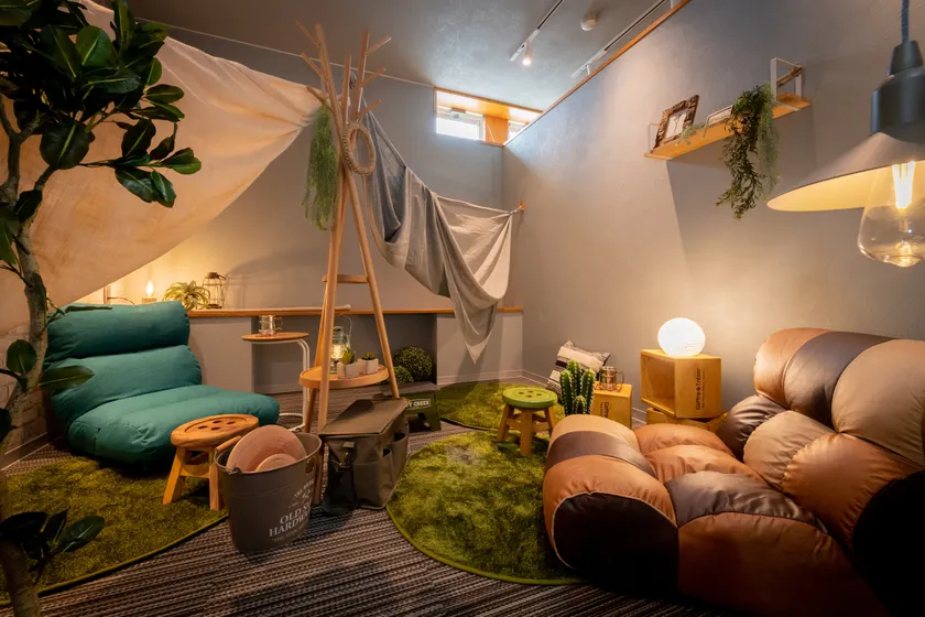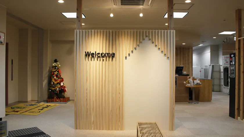 そしてこの度、「フィンランドの森」のデザインをベースに、館内各所のリニューアルを行いました。老朽化していた各所を刷新しトーン&マナーを統一することで、フィンランドの森だけでなく、館内全体でお客様にくつろいで過ごしていただけるよう、居心地の良い空間づくりを目指しました。具体的には、1Fはエントランスにはじまり、フロント・通路・お食事処「かっぱ亭」等、2Fは仮眠室・通路・宴会兼会議用スペース等のリニューアル工事を行いました。