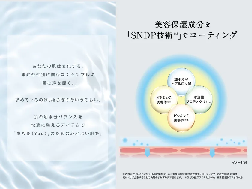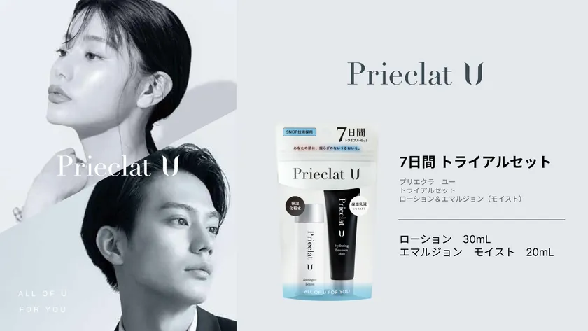 スギ薬局と研究機関が共同開発した、美容成分を角層のすみずみまで届けることができる「SNDP(R)」技術を採用し、浸透力にこだわったスキンケアブランド「プリエクラ」とジェンダーニュートラルスキンケアブランド「プリエクラU」。