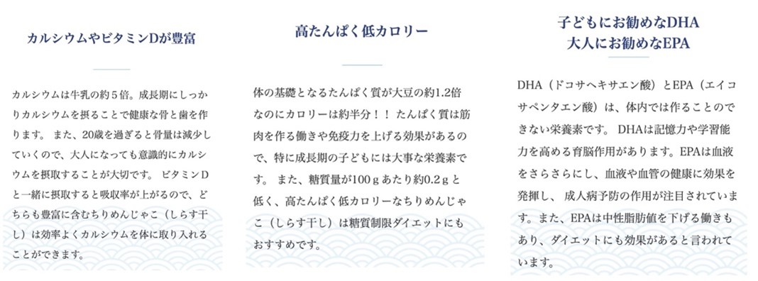 上画像:ちりめんじゃこ・しらすの栄養素について(株式会社さかもとHPより引用)