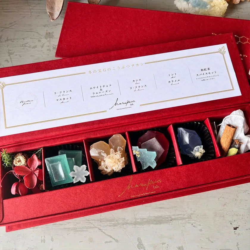 「ArtなFoodであそぶ」をテーマにプロダクトを展開するメルティングポットハラペコラボ株式会社(所在地:福岡県福岡市、以下 ハラペコラボ)から、クリスマスギフトにおすすめの冬限定の新作が期間限定で登場。宝石のように小刀で切り出し制作した琥珀糖「冬の宝石のこうぶつヲカシ」と、アイスケーキ「宝石のカッサータ~ストロベリースノークリスタル~」を12月1日より公式オンラインストアにて販売開始しました。