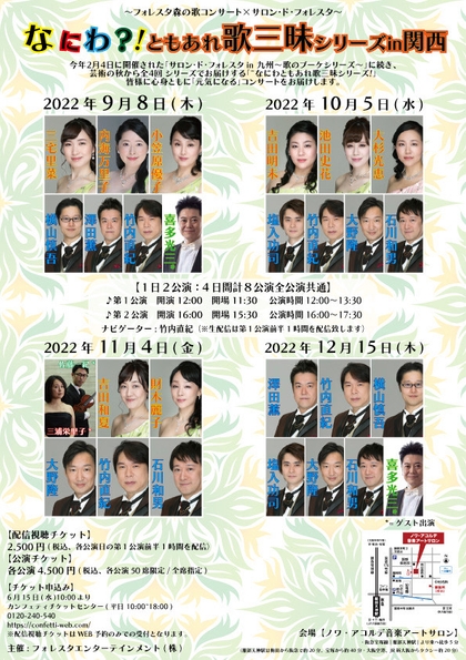 「森の歌コンサート ✕ サロン・ド・フォレスタin関西 〜なにわともあれ歌三昧シリーズ〜」開催 カンフェティにてチケット発売 全国配信もあり!