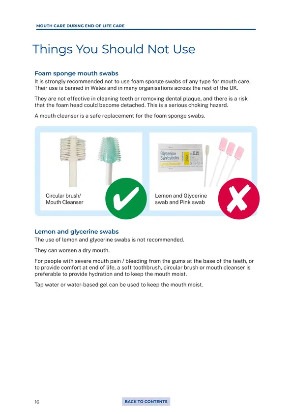 マウスケアスワブ(口腔用綿棒)は医療機器警告(MDA/2012/020)に指定され、患者の口腔内でスポンジヘッドが外れて死亡事故が発生したため、ウェールズでは使用が禁止された。