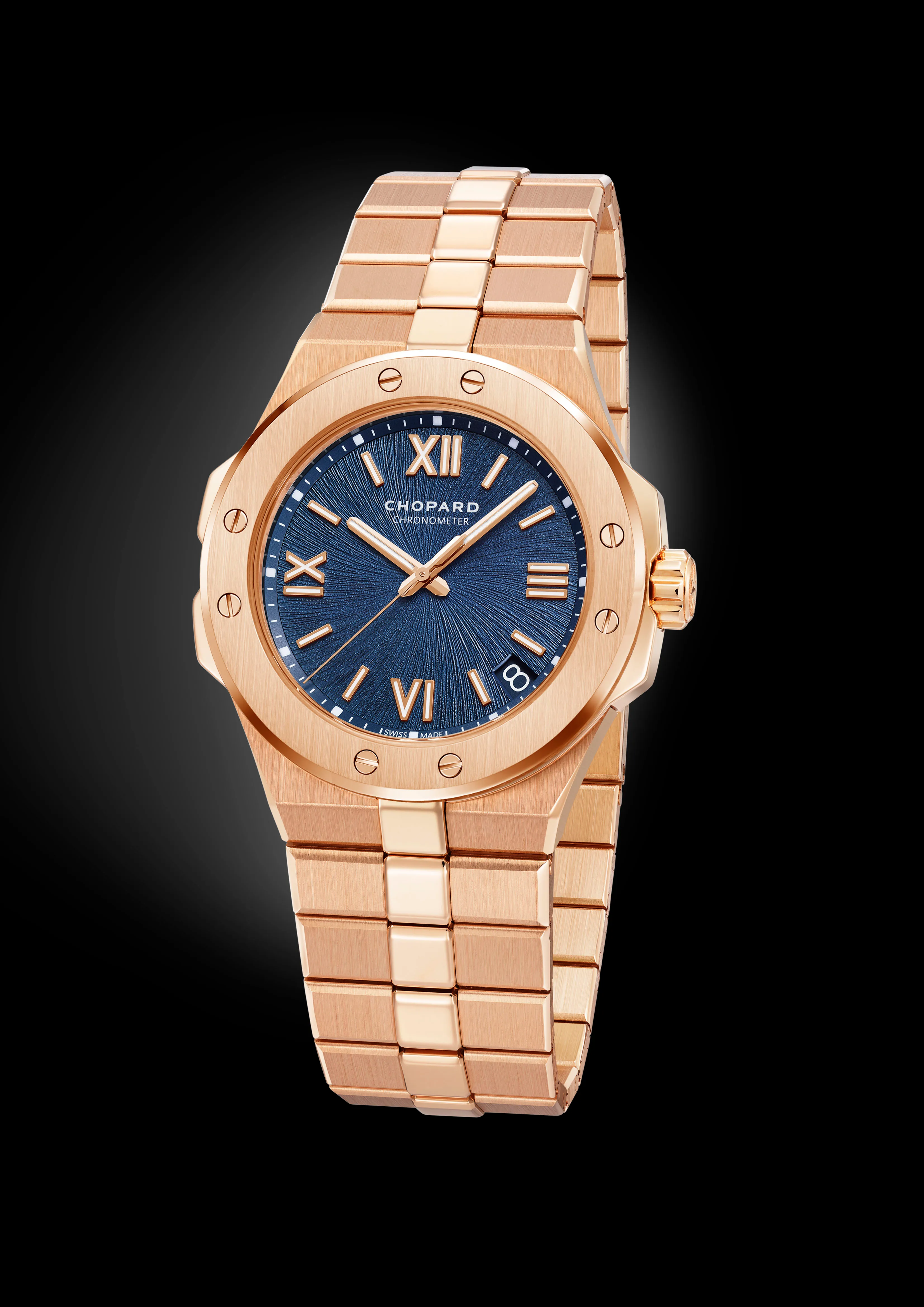 エシカルローズゴールド製ケース&ブレスレット、自動巻き、41mm径、アレッチブルー文字盤