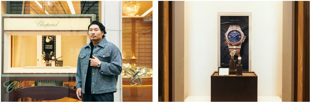 稲垣啓太、レディースのジャケットを羽織ってショパールブティック銀座本店に来店。
