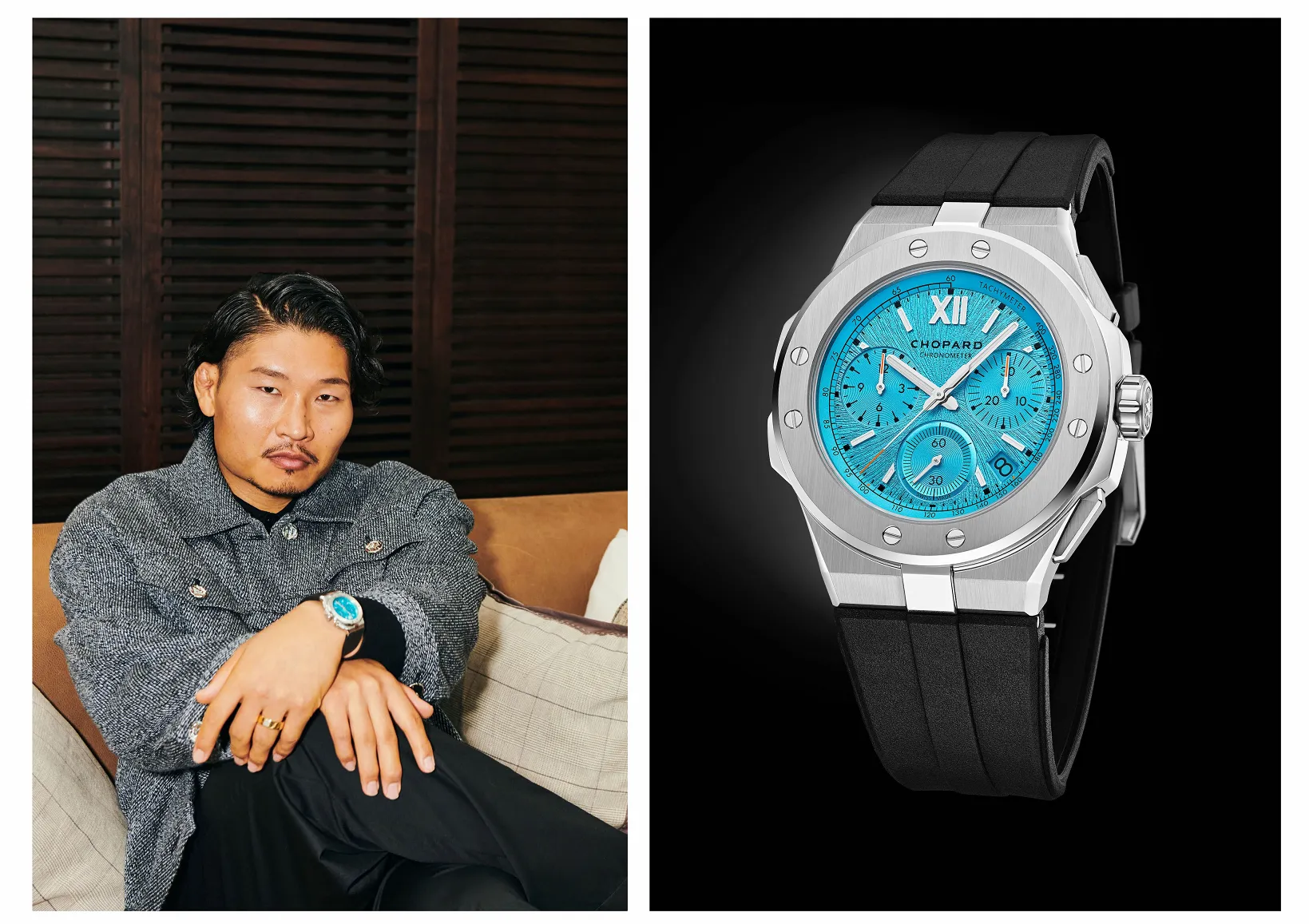 プライベートですと、僕はファッションも好きですし、ファッションの中にショパールさんの時計を組み入れてコーディネートすることも好きなのですが、最近は妻にダメ出しをされることもあるので(笑)。ダメ出しを受けないように、コーディネートで妻を納得させられるくらいのセンスを磨いていけたらと思っています。選択肢がある分「これもいいんじゃないか」と言われ…。ダメ出しと言ったら妻に失礼ですね。そういう選択肢の中で「これ!」というのを当てたいです。たまに当てるので、一発で当てられるように頑張りたいと思います。
