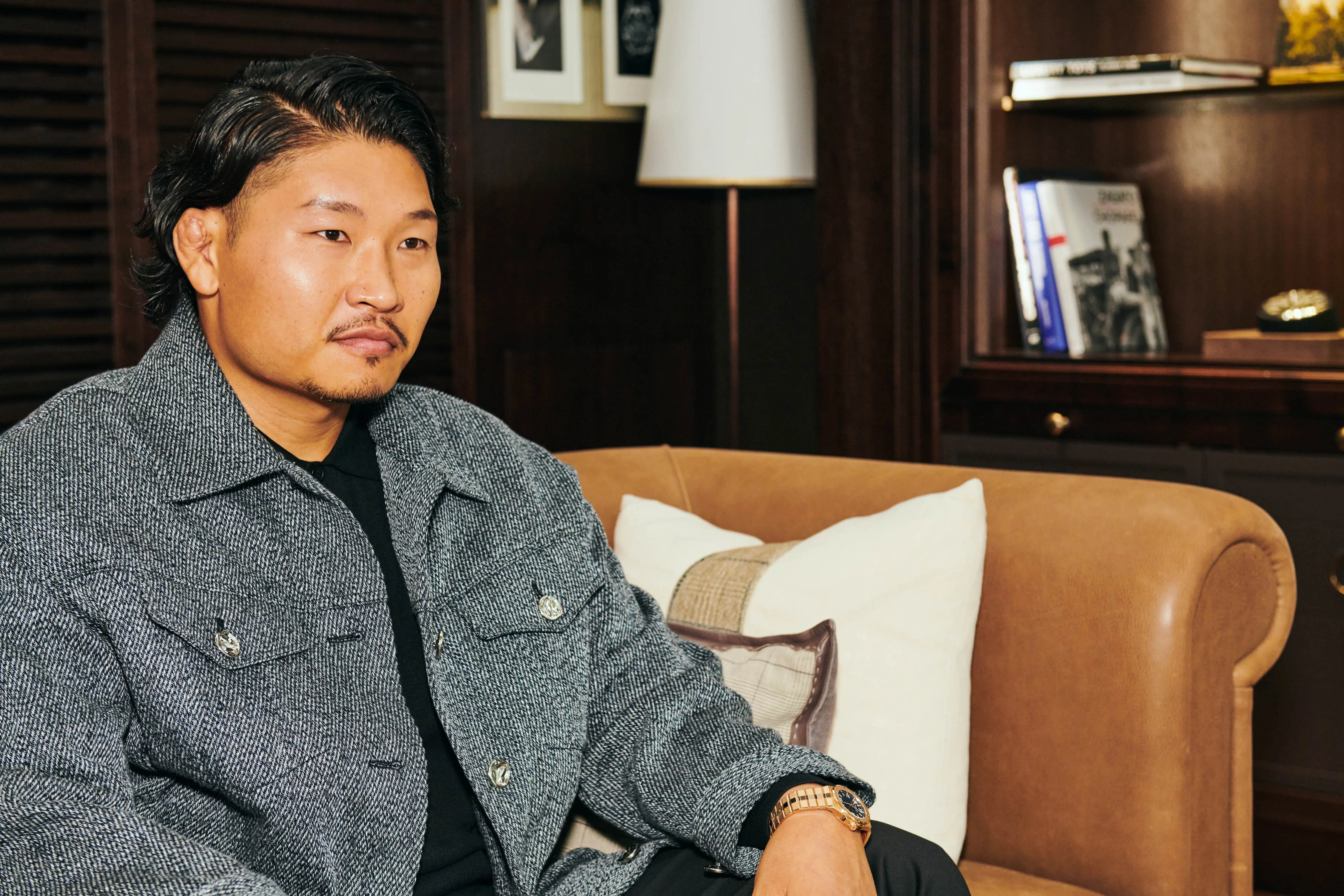 稲垣:僕は暗めな色を好むのですが、このジャケットだけ色味が入っていて。実は、メンズの服ではなくレディースの服なんですよ。僕は「メンズはメンズの服を着る」というこだわりがなく、自分が着たいと思ったものを着たいと考えています。たまたまレディースにサイズがあったんですよね。