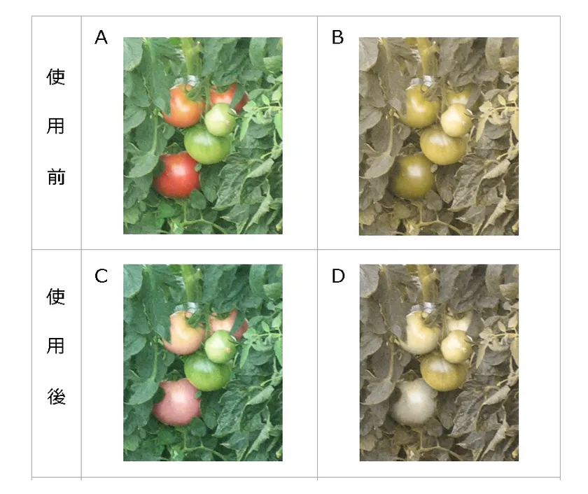 例えば、赤緑が見えにくい方の場合、オリジナル画像(A)は(B)のように見えます。そこで、Visolveでの変換後(C)は(D)のように見え、明るくなった部分が赤だと推測することができます。