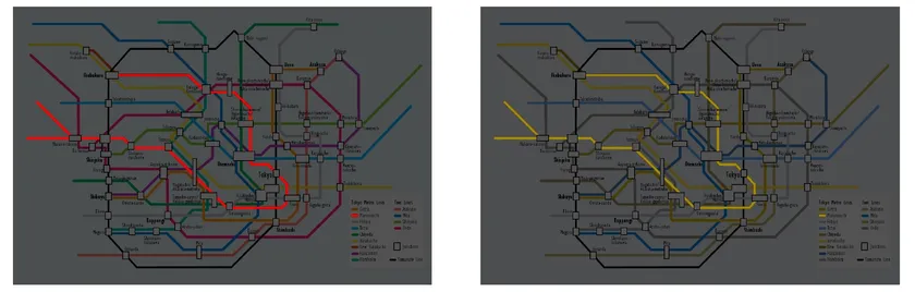 例えば、色で表現された図(左)に対し、描画を加えた図(右)で分かりやすくします。