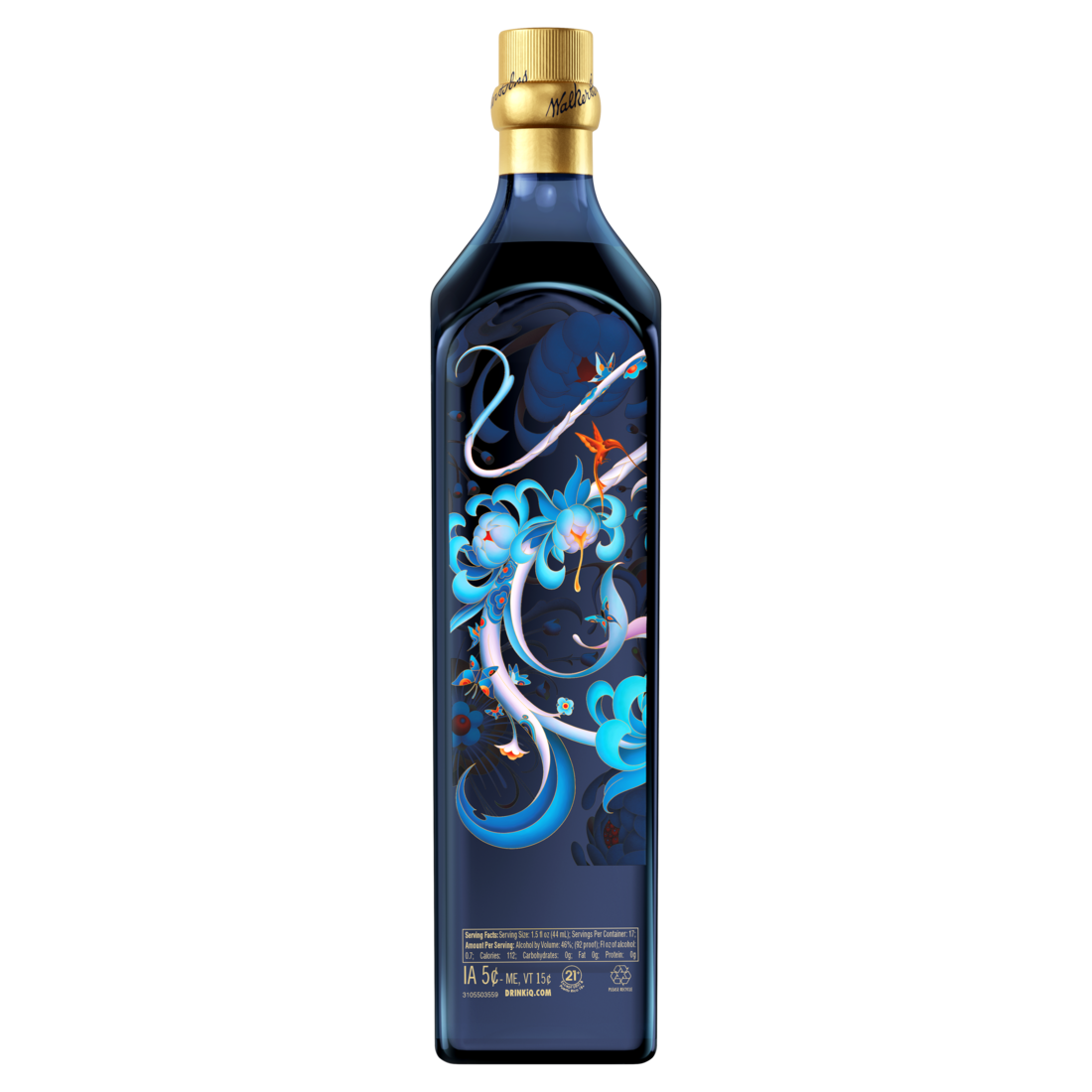 本商品に描かれた辰年の鮮やかなデザインは、高貴な甲辰(きのえたつ)が革新的かつダイナミックに表現されています。2024年に迎える甲辰(きのえたつ)とは、十干十二支の41番目の年にあたり、十干の1番目である「甲」と十二支の5番目である「辰」が重なる年になります。多くの人から干支の中でも最も力強いとされる辰は、生命と創造性の象徴であり、アジアの伝統文化では未来の繁栄の前兆であり、ジョニーウォーカーのスローガンである“KEEP WALKING”という、常に進化し続けるという揺るぎない信念と呼応しています。また、ジェームズ・ジーン氏はジョニーウォーカー7代目マスターブレンダーのエマ・ウォーカーと、彼女が率いるチームがもたらした驚くべきジョニーウォーカー ブルーラベルを味わった際に感じた、風味の層からインスピレーションを得て、デザインの中に黄金色に輝く蜜が溢れ流れる菊の花と、貴重な蜜を口にするハチドリの様子を描いています。