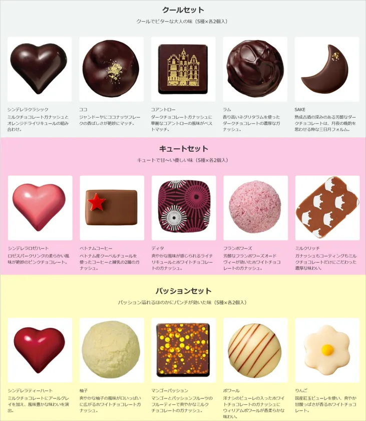 ■クール、キュート、パッションをイメージした15種類のチョコレートを厳選