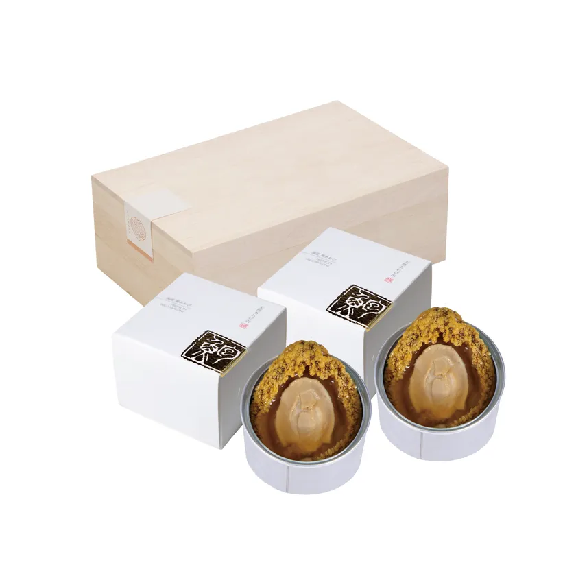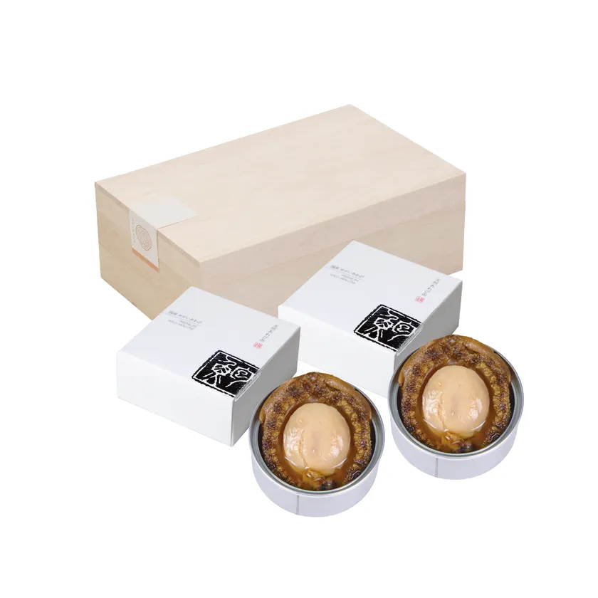 あわびの独特な食感を引き出すために活きたまま調理して、塩と水あめのみで味付け。余計な調味料は一切使わず、あわび本来の美味しさを引き出しています。ふっくら煮上げたあわびの身はもちろん、旨味が詰まった煮汁は最高のだし汁。煮汁の一滴までお楽しみいただけます。缶詰として、さらに手軽に。そして長期保存できるので、贈答品として喜ばれるのはもちろんのこと、自分へのご褒美として、年末年始の来客を迎えるおもてなしとしても最適な商品です。