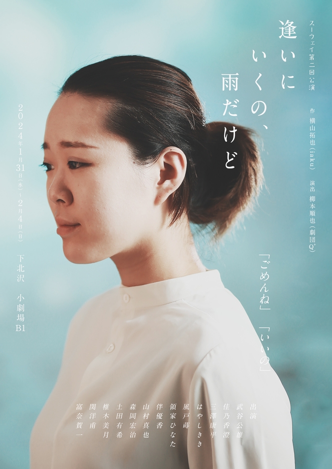 スーウェイ(代表:佳乃香澄)主催、スーウェイ第2回本公演『逢いにいくの、雨だけど』が2024年1月31日(水)~2月4日(日)に下北沢 小劇場B1(東京都世田谷区北沢2-8-18 北沢タウンホール地下1階)にて上演されます。