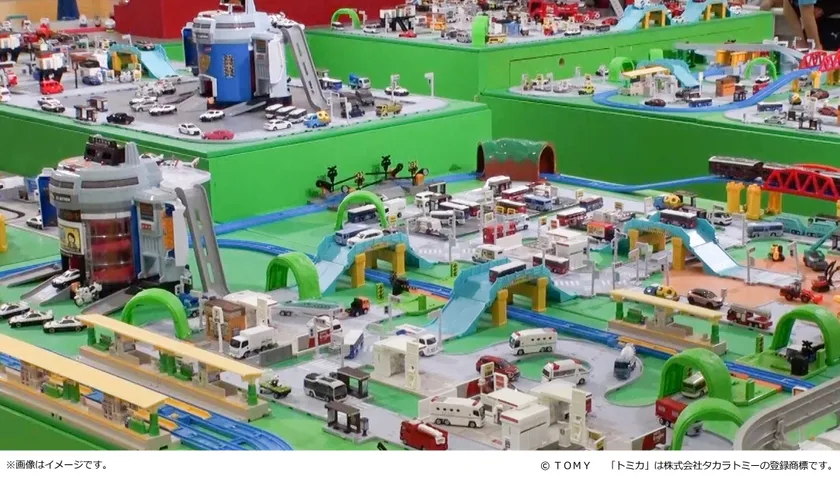展示ゾーンでは、大迫力のおっきなパーキングからたくさんのトミカが走り出す「トミカビッグスライダーパーキング」や、パトロールカーや消防車に乗って写真が撮れる「トミカスタジオ」、大人気のトミカがいっぱいのおおきなジオラマ「トミカ巨大ジオラマ」など、トミカの世界に存分に浸っていただける内容となっております。