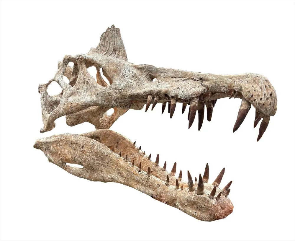 スピノサウルスは、ワニに似た頭をした謎の多い恐竜です。その貴重な未公開の実物化石(個人蔵)を「オダイバ恐竜博覧会」で特別に展示します。スピノサウルスのリアルを体感し、その謎に迫ってみましょう。