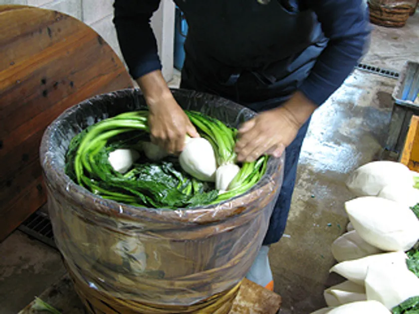 江戸時代末期頃、上賀茂神社近くの農家でも栽培されるようになりましたが、一本たりとも他所に持ち出すことは禁じられていました。そのような中、上賀茂の地だけに「すぐき」の発酵技術が脈々と伝承されてきたのです。