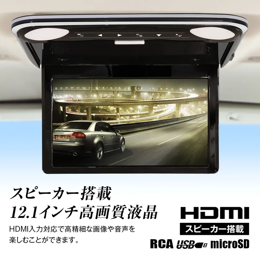 ◆12.1インチ画面フルHD高画質液晶フリップダウンモニター登場
