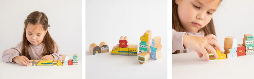 ブロックを使って物語を作ったり、ごっこあそびを楽しむことは、お子様の想像力と創造性を刺激し、語彙力やコミュニケーション能力を向上させることができます。また積み木あそびでは物理的な原理や構造を理解するのにも役立ち、バランス感覚や空間認識を養うこともできます。