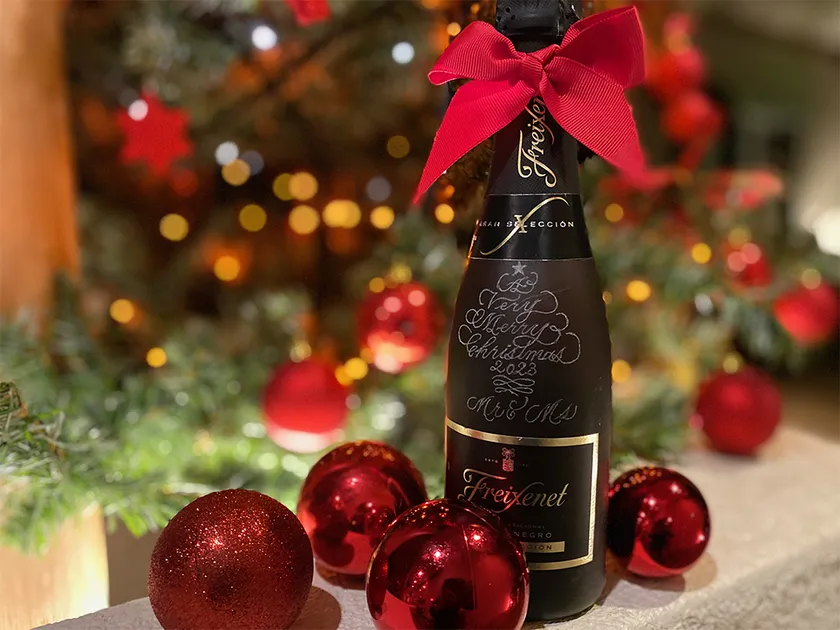 ネームが彫られたオリジナルスパークリングワイン