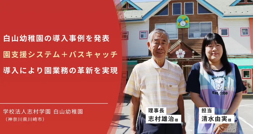 VISH株式会社(所在地:愛知県名古屋市、代表取締役:田淵 浩之)は、幼稚園・保育園・認定こども園の園業務負担軽減を支援するICTツール「園支援システム+バスキャッチ」を導入した学校法人志村学園 白山幼稚園(所在地:神奈川県川崎市、理事長:志村 雄治)の導入事例についてインタビューを行い、その導入の効果について発表いたします。