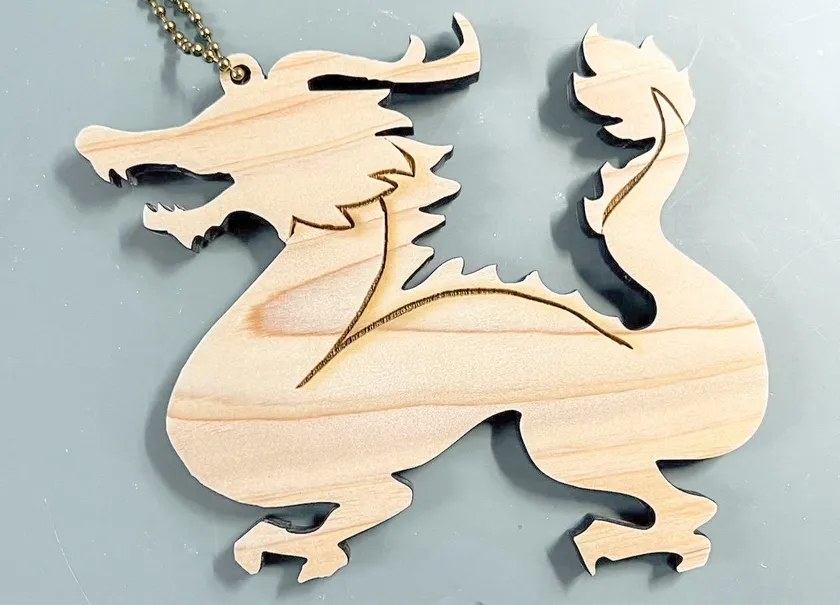 三重県産木材「尾鷲ヒノキ」でできた形やサイズの違うパーツを自由に飾り付けて、福を呼び込む縁起物キーホルダーを作ります。キーホルダーの土台には数量限定(50個)で干支の辰型もご用意しています。ヒノキは、暑さ寒さに耐えて寿命が長いことから縁起のいい木とされています。