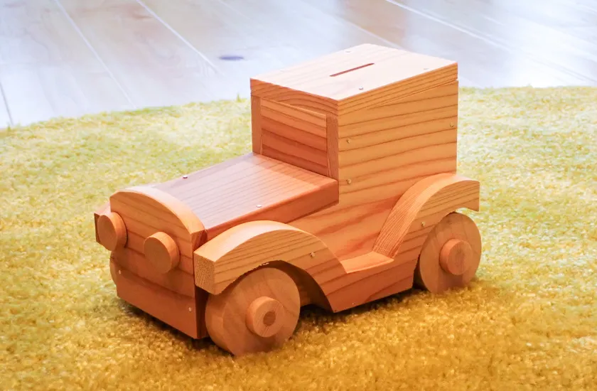 車輪が動くクラシックカー型の貯金箱が簡単に作れます。体験を通じて金槌の使い方や釘の打ち方を学べるので、お子さまの初めてのDIYにおすすめです。自分で作った貯金箱だからこそ、より大切にお年玉やお小遣いを貯めていける…お金の大切さを学ぶきっかけにもなります。
