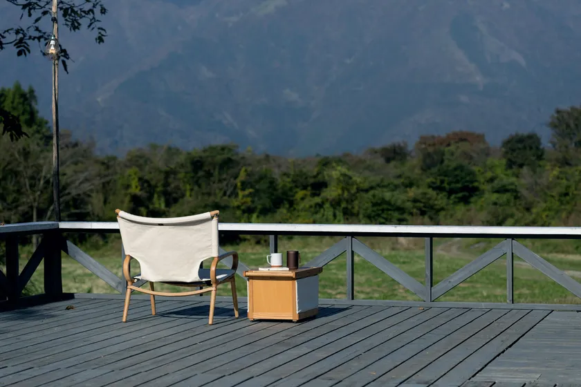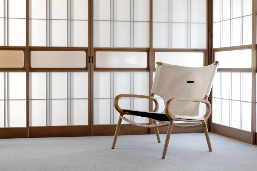 “家でも外でもここちよく。ゆったり座れる幅広の木製チェア”