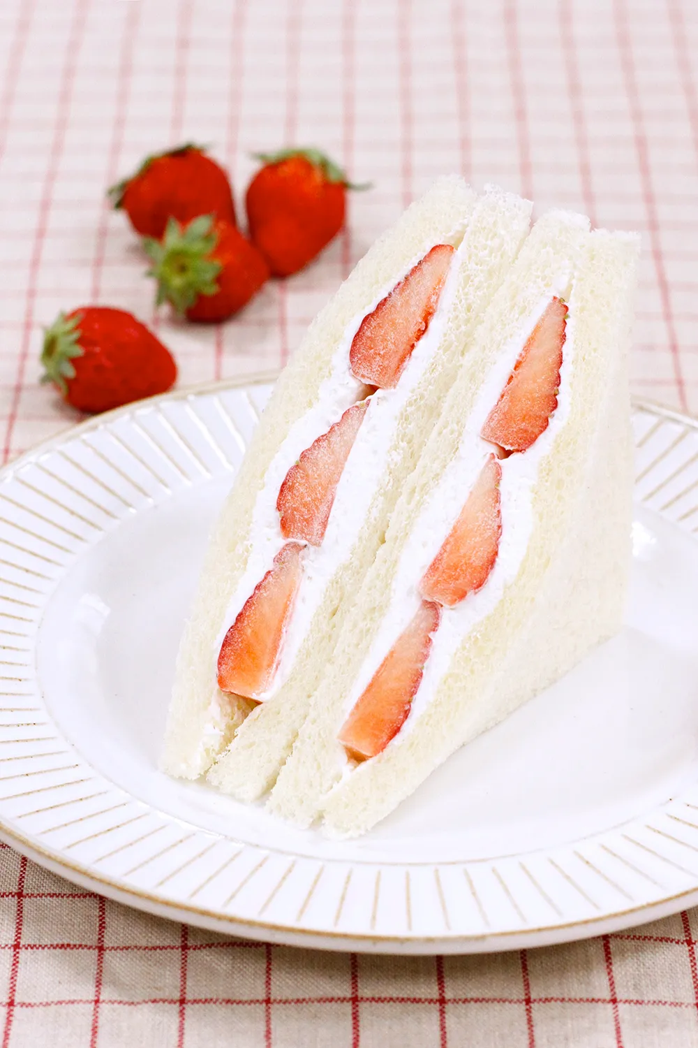 いちごの甘酸っぱさとクリームの甘い香りがより広がる特製フルーツサンド。軽やかな口当たりで軽食やデザートなどにおすすめです。