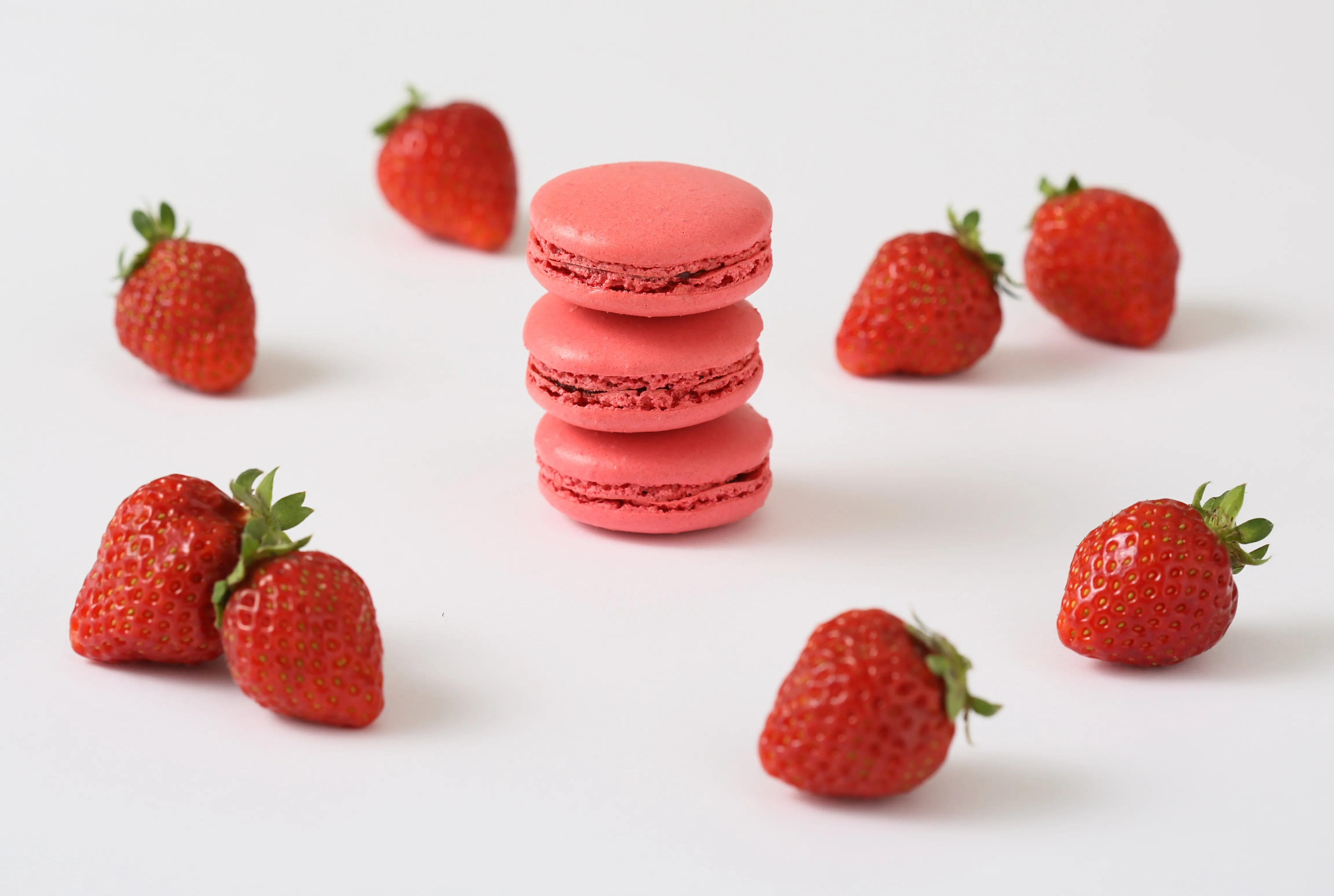 この季節にしか味わえない、甘酸っぱいいちごのコンフィチュールの マカロン。ピンク色の見た目も魅力的な一品です。