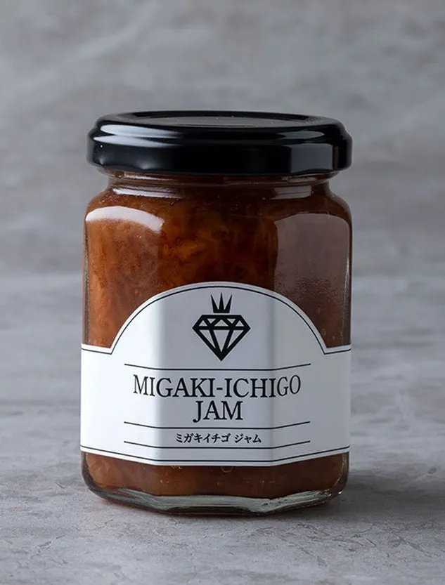完熟で摘み取った“食べる宝石 ミガキイチゴ”を100%使用し、食品添加物無添加で甘酸っぱくて濃厚な味わいに仕上げました。ごろっとした粒感で、ミガキイチゴそのままの美味しさを楽しんでいただけます。