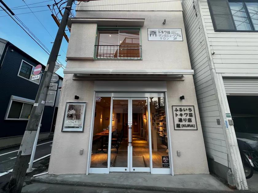 「ふるいちトキワ荘通り店 蔵【KURA】」は、トキワ荘通り商店街のトキワ荘通り店の真向かいにあり、トキワ荘マンガミュージアムからも至近の距離に出店をいたしました。1階は飲食、物販のスペースとなっており、1号店の「ふるいちトキワ荘通り店」と機能融合を図った飲食スペース(14席)として、ゆっくりくつろげる空間をご提供しております。