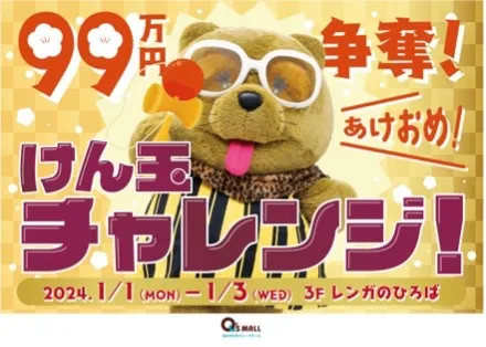 さらに、最大10万円が当たるスクラッチカードや、総額500万円分のキューズモールギフトカードが当たるジャンボ宝くじなどのお得な抽選会を開催するほか、「けん玉チャレンジ」や「巨大だるま落とし」などお正月ならではのチャレンジ企画、新成人初の運試しができる「成人ガチャ」など、各施設で年末年始を楽しむイベントを多数開催予定です。