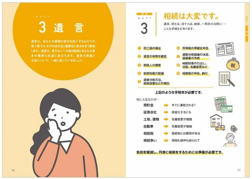 相続・遺言・生前整理・介護施設・お葬式・墓地… 各専門分野を網羅!複雑な終活を分かりやすく、 一冊に凝縮した「終活パンフレット」が完成
