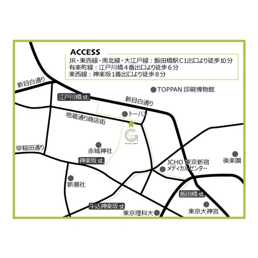 アクセス:JR・東西線・南北線・大江戸線 飯田橋駅C1出口より徒歩10分