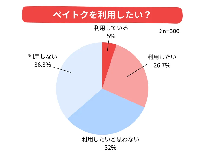 続けて、「ペイトクを利用していますか?もしくは、利用したいと思いますか?」と聞いたところ、下記の結果となりました。