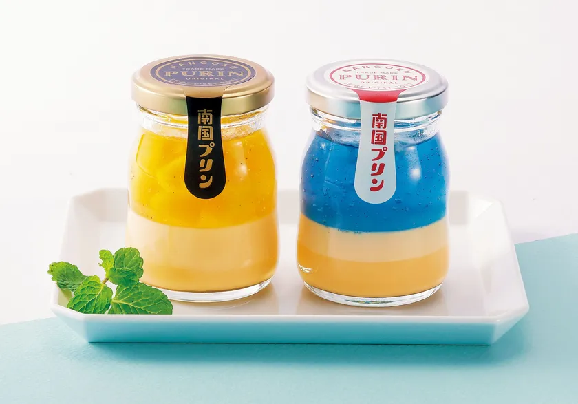 宮崎県産のマンゴーをふんだんに使用した宮崎マンゴープリンや、宮崎の観光地「青島」をイメージした青島プリン。青いジュレはラムネ味でさっぱりとしていてプリンとの相性も抜群。