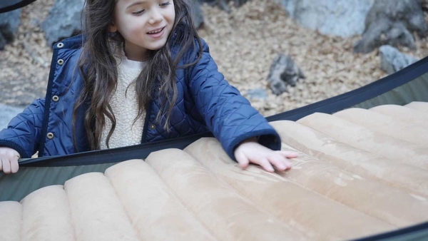 付属のエアマット「断熱サファリパッド」は、スエードコーティングのR4断熱素材を使用しています。