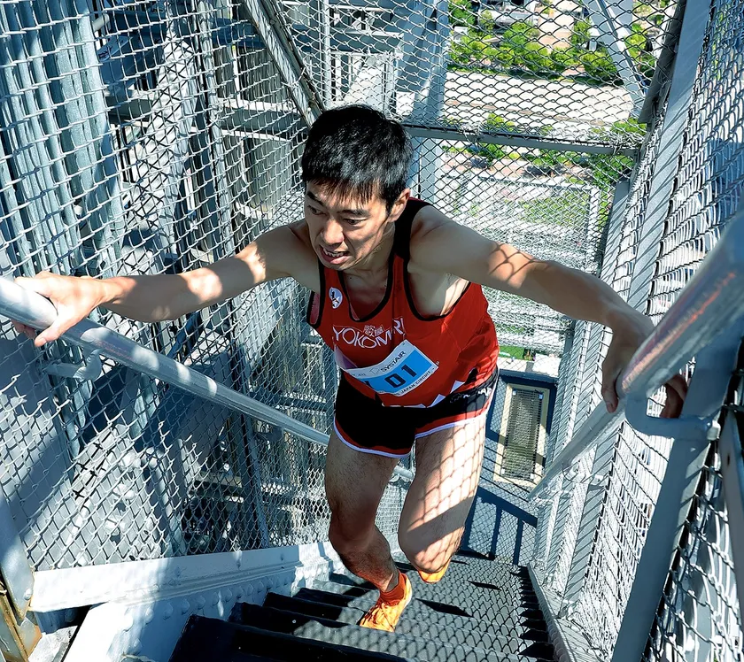 1階から60階の展望台まで、1,610段 288mを8分53秒61でゴール。幼少期は肥満体系で、苦手ではあったが大好きなスポーツでいつか世界一になりたいと続けた努力が結実しました。