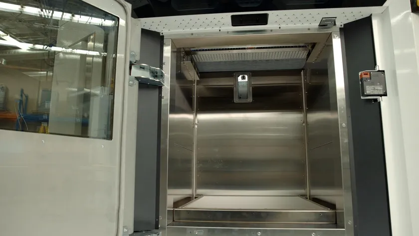 「F3300」は、(X)600×(Y)600×(Z)800mmと大きな造形エリアを持ちます。さらに、造形エリアは可変速ファン付き完全加熱チャンバーを搭載しており、一度ヘッドで溶かした樹脂が外気に触れ、急激に冷え固まることで発生する“熱収縮”によるモデルの変形や造形不良を抑制し、高品質造形を実現しました。