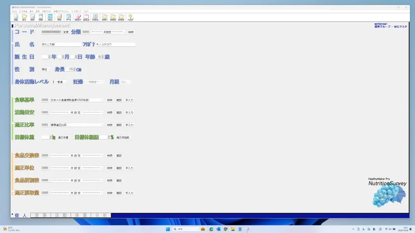 製品名 : 栄養価計算ヘルシーメーカープロ・ニュートリションサーベイ