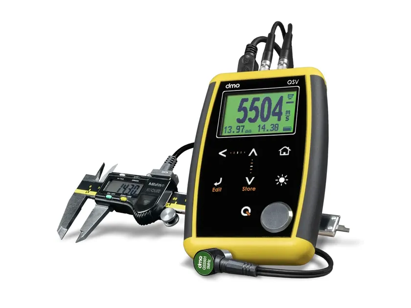 鋳鉄の黒鉛球状化率の管理に最適、ノギスと連携し厚さ入力を省力化 超音波音速計『QSV DLC-M』を12月15日に販売開始