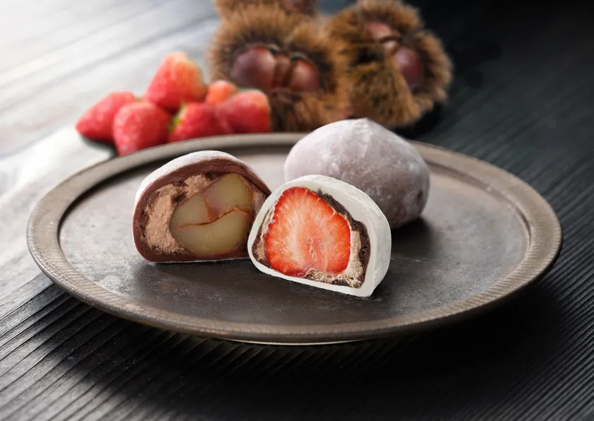 甘酸っぱい大粒の苺と濃厚なチョコ餡そしてチョコクリームとの相性が抜群の「ショコラあもーれ」とラム酒に漬け込んだ大粒の渋皮栗をチョコ餡&チョコクリームで包みさらにほろ苦いカカオ風味のお餅で包み込んだ「ショコラまろん」の2種類をお楽しみいただけます。
