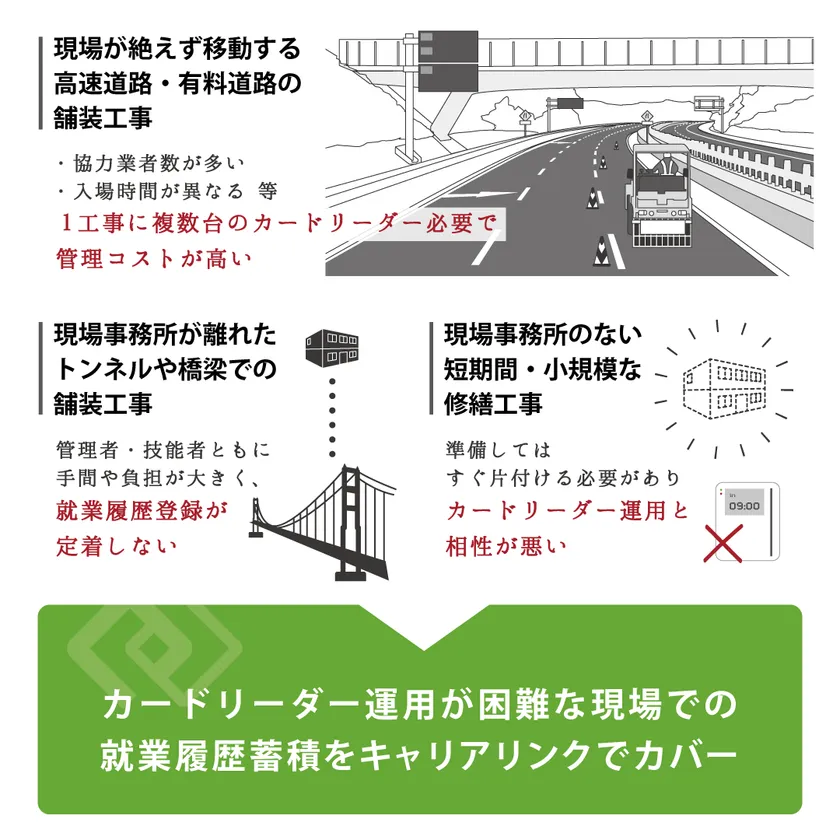カードリーダー運用が困難な現場での就業履歴蓄積をキャリアリンクでカバー
