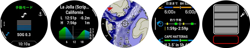 追加された機能は、天体データベースを活用して、太陽と月の入り時間、現在地情報などから、釣りを成功させるのに最適な曜日と時間を提案する「フィッシュフォーキャスト」と、互換性のあるGarminのトローリングモーターに接続すると、ステアリングやアンカーのロックなどを手首のウォッチから直接制御することができる「トローリングモーターリモート」。また、「アクティブウェザー」を使用すれば、現在の気象状況と天気予報を表示したり、地図上に気象レーダーを表示することも可能です。※1