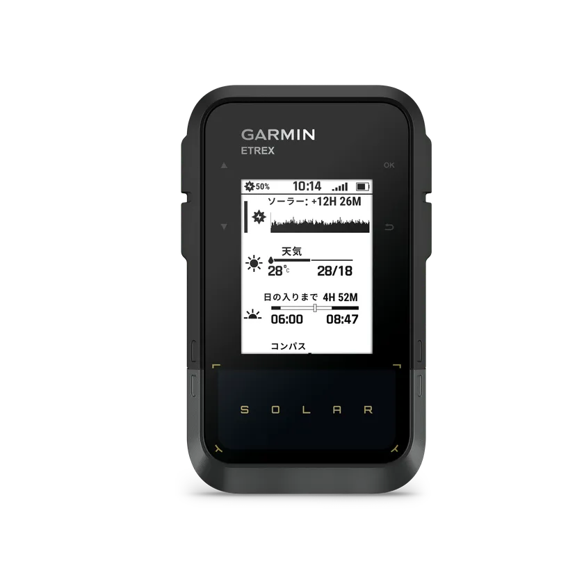 この度新発売する『eTrex Solar』は、長年支持を得てきた『eTrex 10J』の後継機として、機能をアップデートするとともに、シリーズ初のソーラー充電機能を搭載しました。