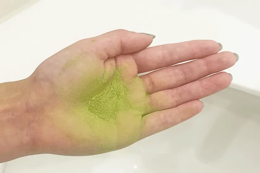 ■【カテキン×ビタミンC】水を加えるとジュワッと滲み出る緑茶色の泡