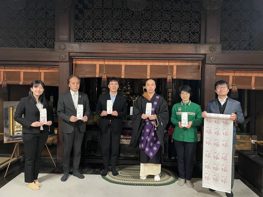 12月1日(金)に京都東山の養源院にて染色を行った『SOOの年賀状 養源院柄』を京都市、日本郵便株式会社、株式会社セブン‐イレブン・ジャパンの関係者ご臨席のもと、ご祈祷いただきました。