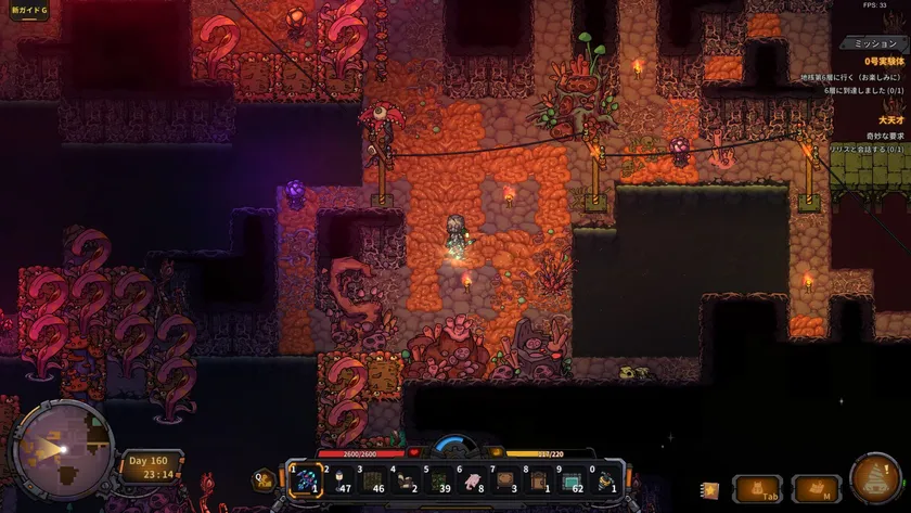 ●地下農業を発展する:色とりどりの野菜を栽培し、様々な地底生物を狩猟して、種類豊かな食べ物を作って空腹を満たす。