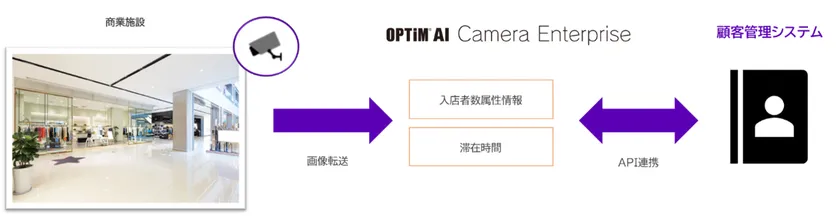 API連携例 商業施設:「OPTiM AI Camera Enterprise」で取得した解析データと顧客管理システムとの連携 イメージ1