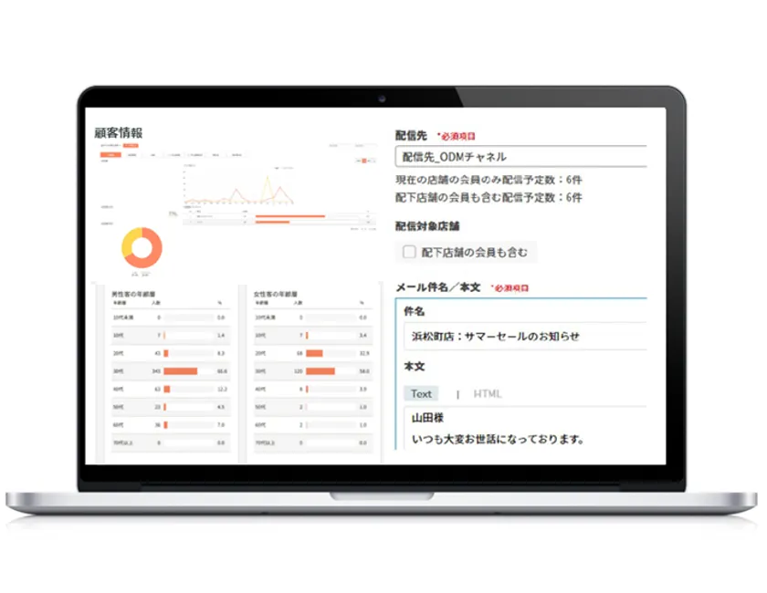 商業施設での既設のイベントやセールにて訪れた顧客の属性情報、滞在時間といった情報からターゲットとなる顧客層を把握し、セグメント配信等のマーケティングへの活用が行えます。